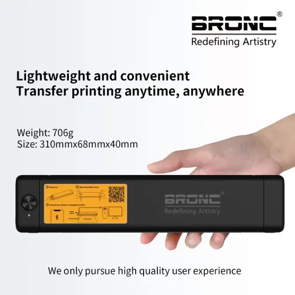 La impresora de tatuajes Bronc ofrece una solucion profesional para artistas que buscan eliminar los cables y las tintas de su proceso de trabajo Su diseño delgado permite transportarla con facilidad en cualquier maletin de tatuaje asegurando que puedas imprimir stencils de alta definicion en cualquier lugar