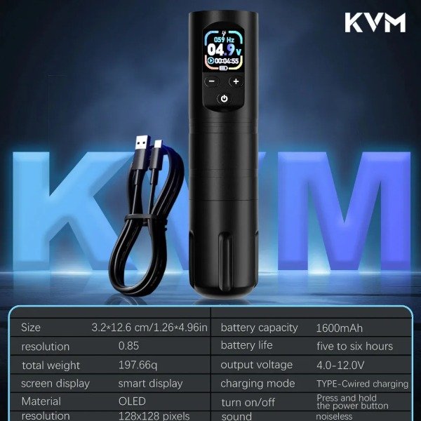 La pieza central de este kit es la Pen KVM, una máquina diseñada para ofrecer una alta estabilidad y un manejo confortable. Su sistema Dual-Mode permite una versatilidad superior adaptándose a las necesidades de cada tatuador.