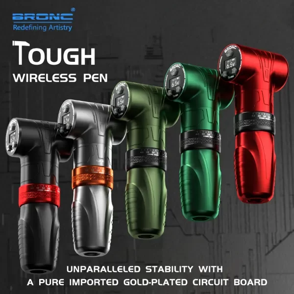 La BRONC Tough es la elección para el profesional que busca una máquina con presencia y precisión. Su diseño ergonómico de bajo centro de gravedad (260g) garantiza un balance perfecto, eliminando el cabeceo y permitiendo un control absoluto en sesiones largas. Equipada con una placa de circuito enchapada en oro, ofrece una estabilidad eléctrica y una respuesta táctil de nivel premium.